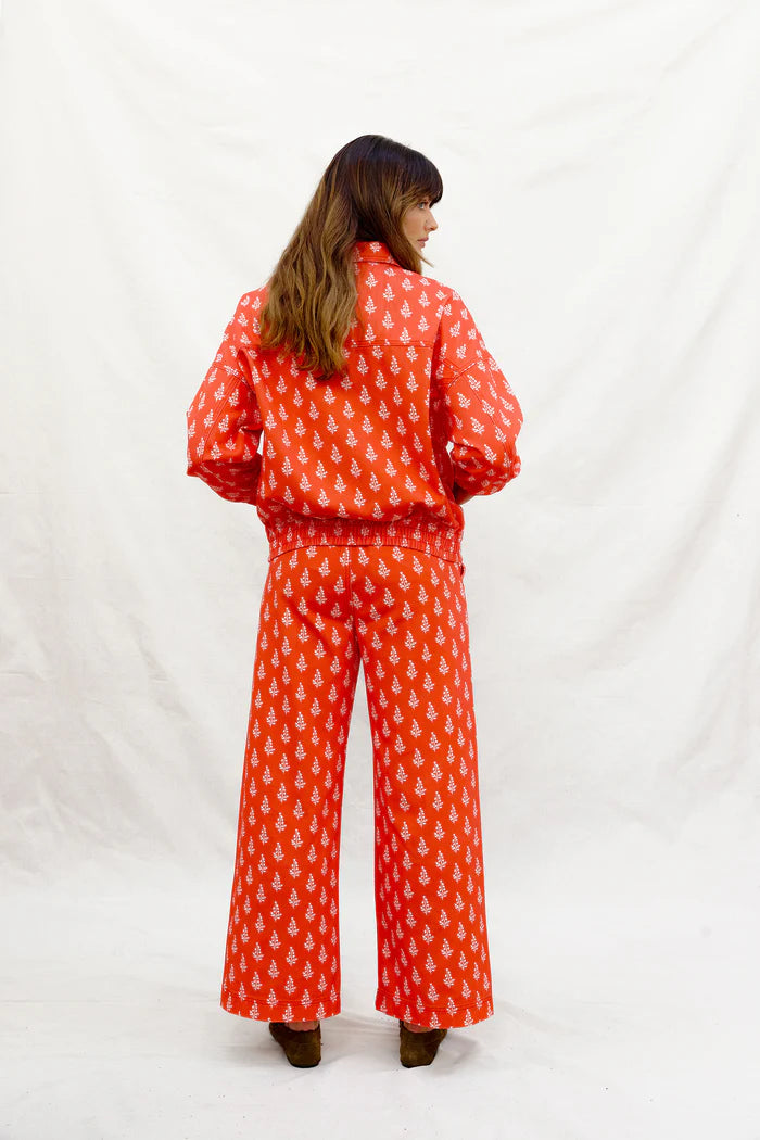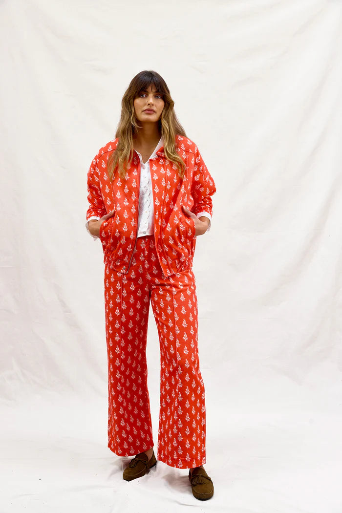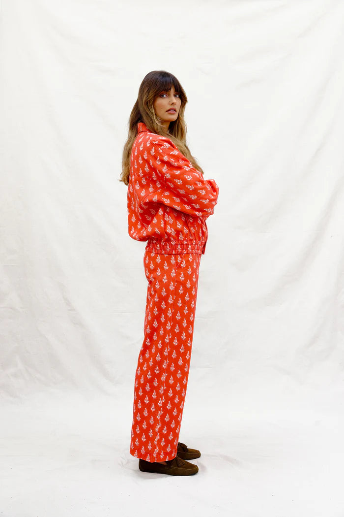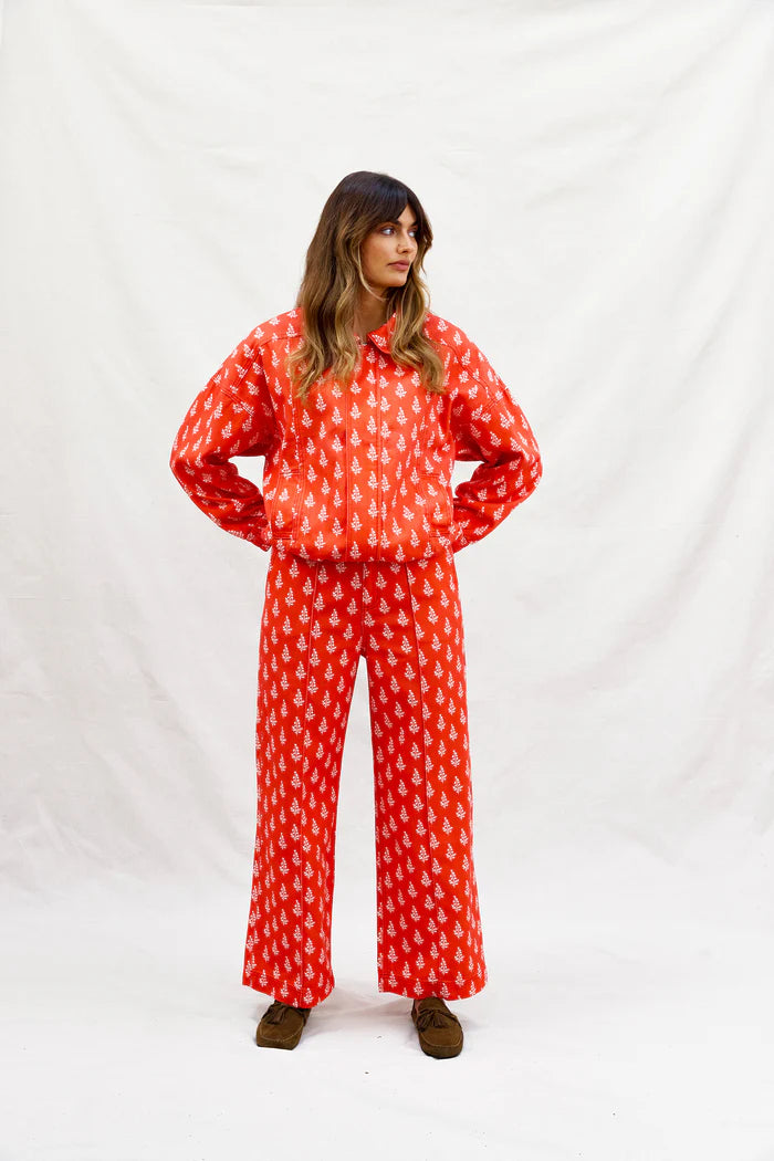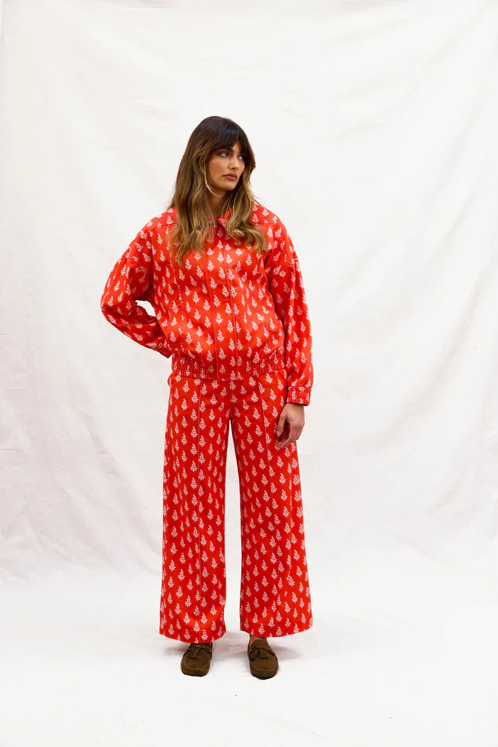 Like Water for Swiss Chocolate pants are straight-leg, soft cotton twill with sweetest floral motif. As deeply satisfying as a seriously good hot chocolate, mid afternoon on a cold day. Our office is dangerously close to one such excellent establishment. Comfort that melts in perfectly & the greatest pop of red to keep things interesting this winter. We're done with barrel legs we're moving into straight. Made for long lunches, longer walks, swiss chocolate puddings for dessert. Pair it with our equally as sweet High on A Hill Bomber & Heidi lace trimmed shirt.