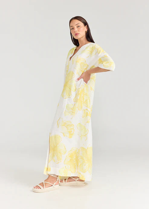 A must-have resort dress for the Summer. Crafted in 100% Linen, the Tulum Maxi is the perfect dress to take you from day to night. This a-line maxi silhouette features a v-neckline, dropped shoulder, mid length sleeve and centre front split.