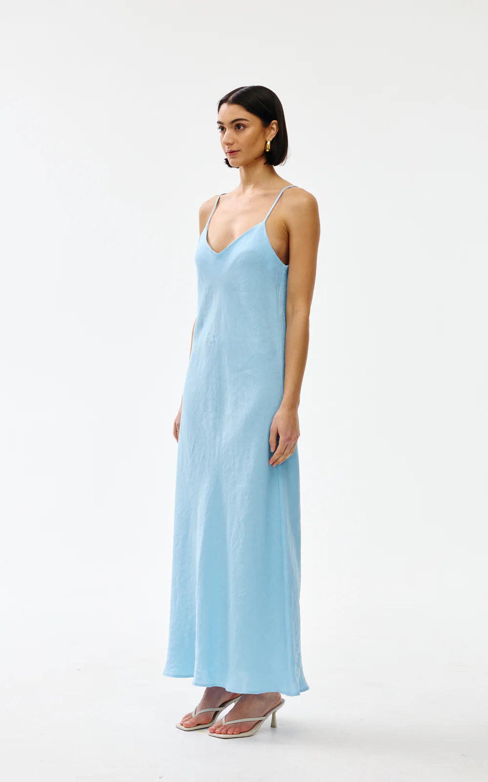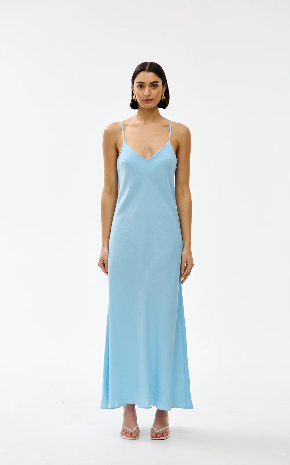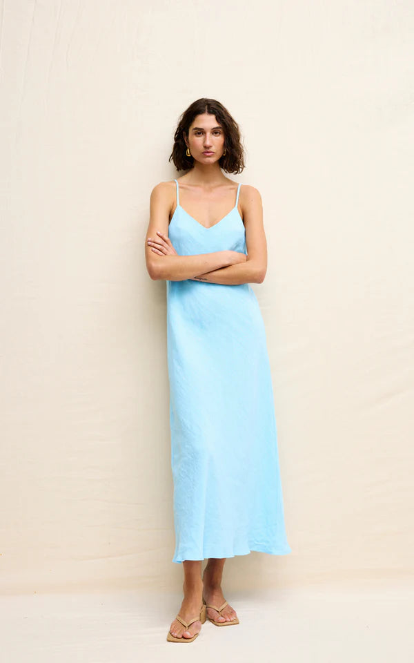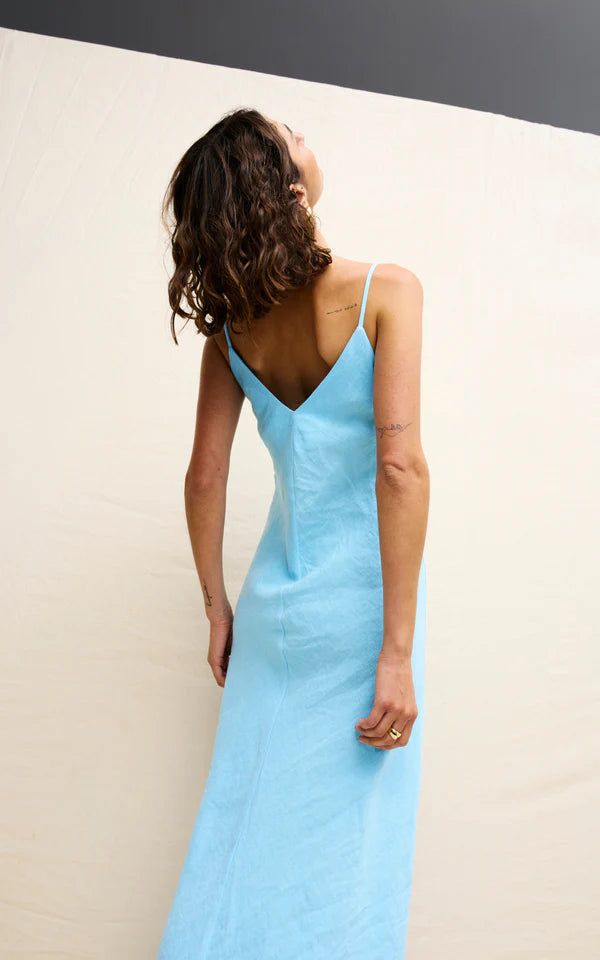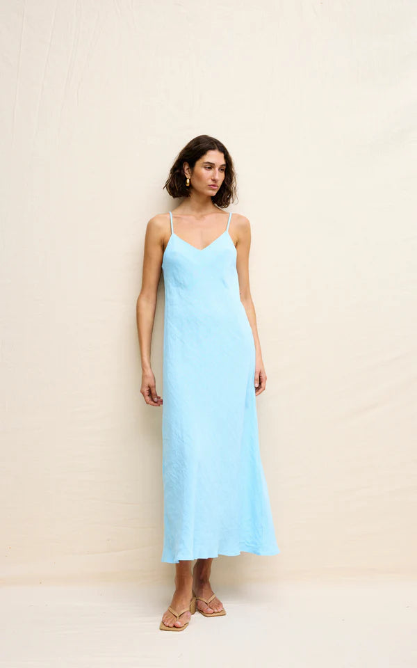 The Rou Slip Dress is a bias cut, full-length piece with a classic v-neckline. The cut of this dress gives a flattering feminine silhouette and drapes effortlessly over the curves of your body.