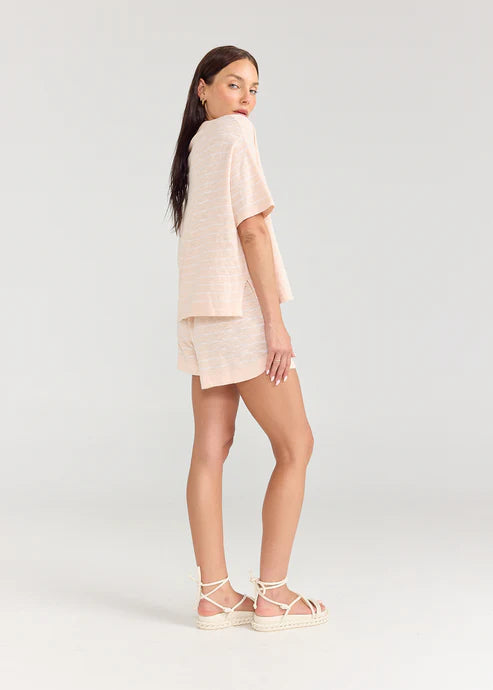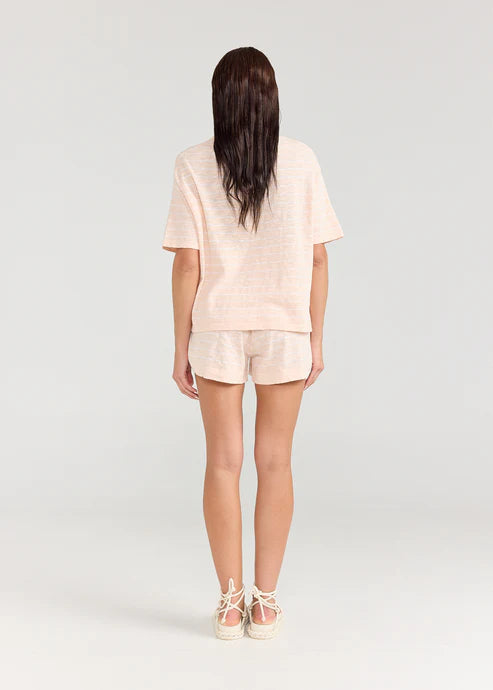 The newest linen jersey style is the ultimate basic T-shirt shape. A boxy shape in a slightly cropped length. Crafted from soft linen Jersey. Pair it with the matching Braelyn Short.