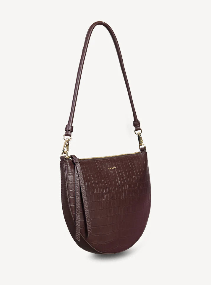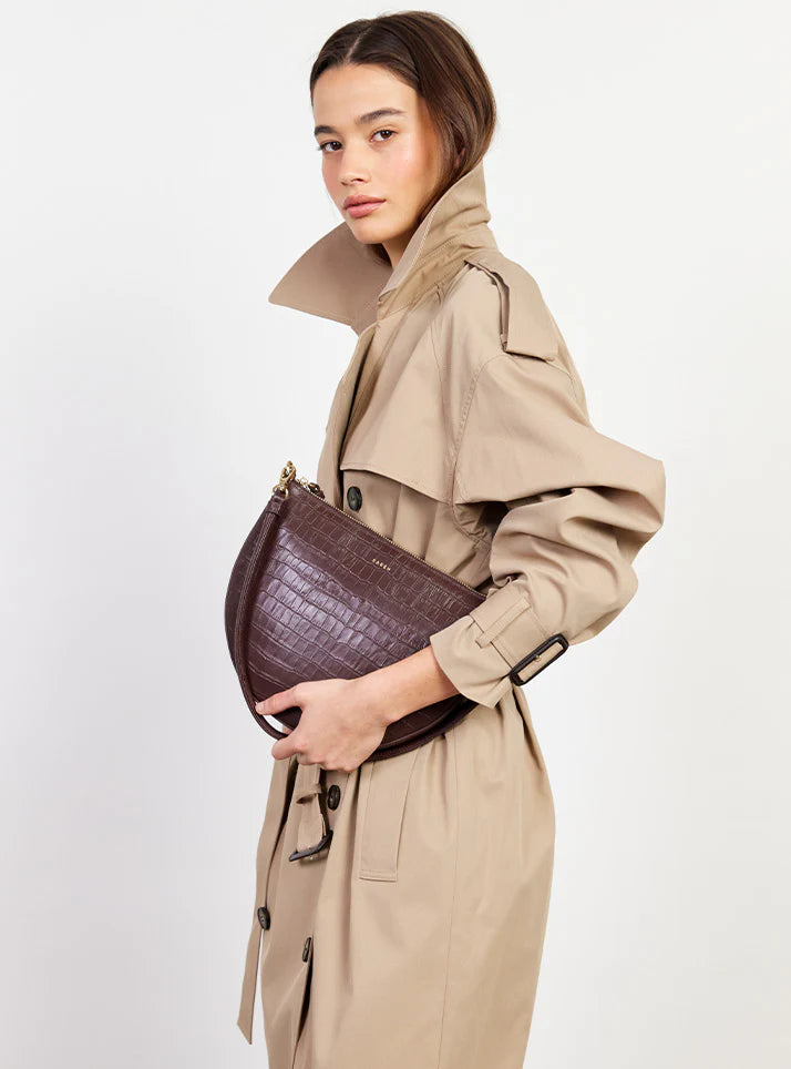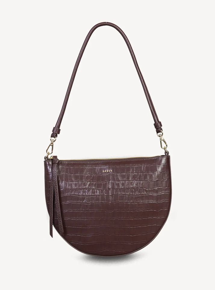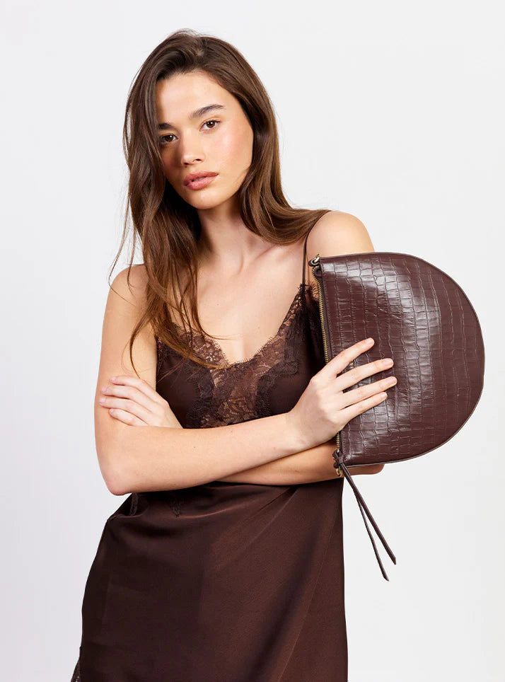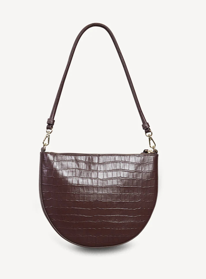 The classic shoulder bag, reimagined in rich croc embossed leather. Gani's softly curved shape showcases the textured croc finish beautifully, moving seamlessly from day to evening. The detachable rolled shoulder handle offers versatile styling, while the gold box chain zip pull adds a refined edge. Bold, elegant, and wrapped in luxurious croc texture — Gani is your new statement essential.