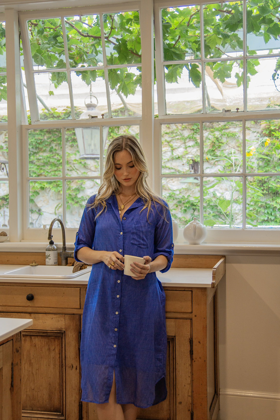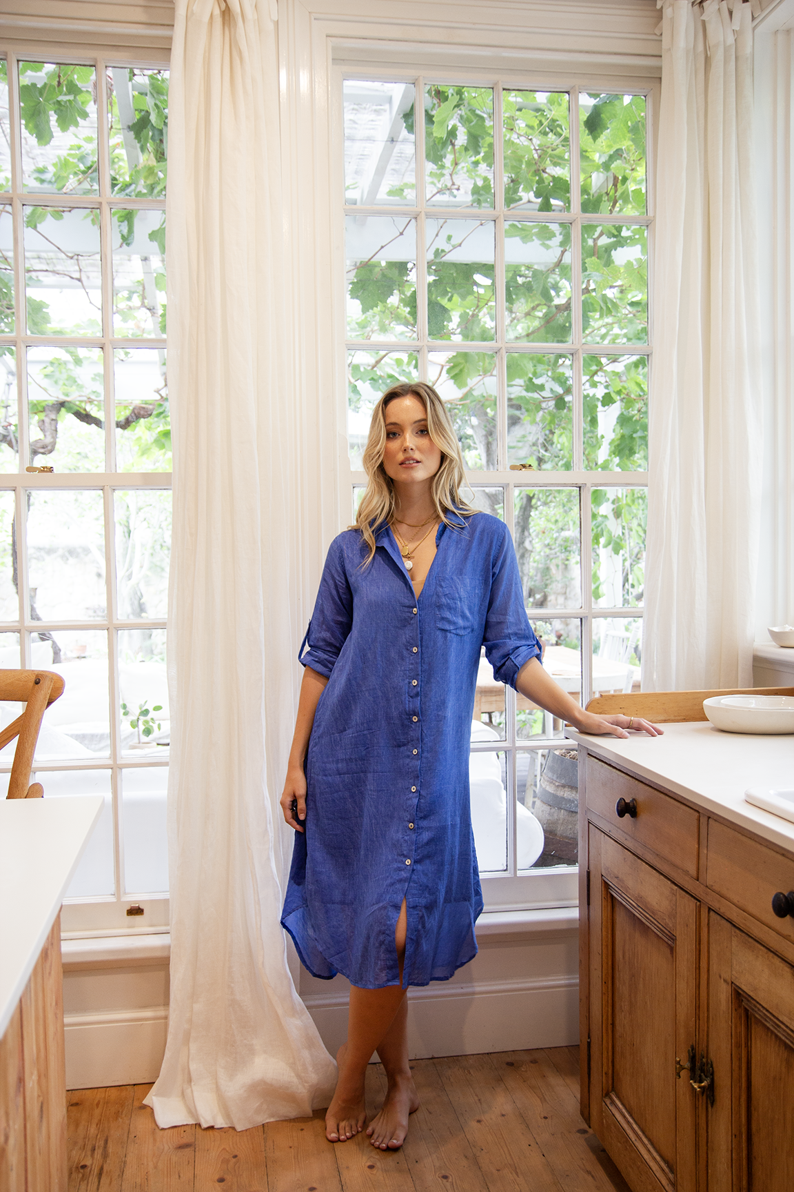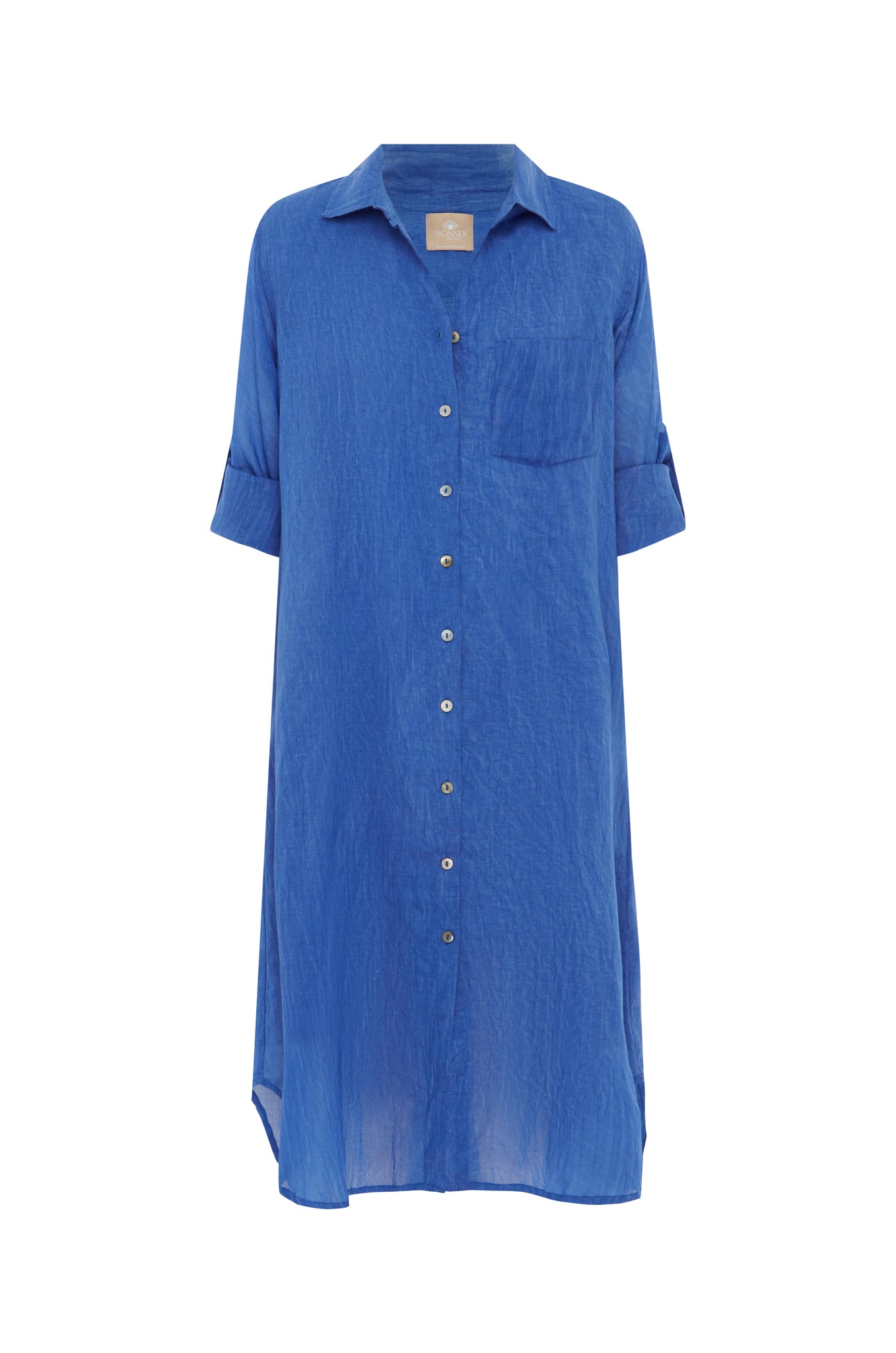 Meet your new go-to dress: the Hailey Shirtdress in Royal Blue. Button it up for a more sophisticated look, leave it unbuttoned for effortless cool—this piece does it all. The soft collar and shaped hem keep things looking intentional, while partial lining means you're comfortable all day long. Whether you're heading to work or brunch with friends, this shirtdress is ready for whatever comes next.
