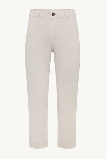 Chino style trousers with a straight leg, side pockets and concealed back pockets. Wide leg hem. A great casual trouser in a comfortable stretch denim. Style with the Elana Jacket for a casual set.